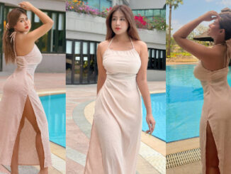 Celebrity Khin Myat Mon photos Khin Myat Mon stands elegantly beside the curved swimming pool, wearing a soft beige halter dress that flows naturally around […]