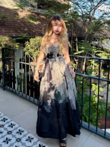 Presented in full view, Cho Zin Win Pyae combines movement and stillness within a serene outdoor setting. The flowing dress and confident stance create visual harmony. This photograph conveys refined lifestyle aesthetics, making it suitable for fashion commentary, inspirational blogs, and brand-safe content development across platforms worldwide audiences today online.